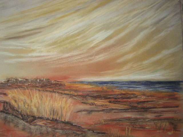 Sur la grève, le va et vient incessant du travail de l’eau, mouvement perpétuel, ascendant, érosion des éléments, modifications lentes du paysage au fil du temps. La progression ne peut se faire sans cette lente érosion des consciences se pliant avec efforts aux lois d’harmonie de cette planète.
