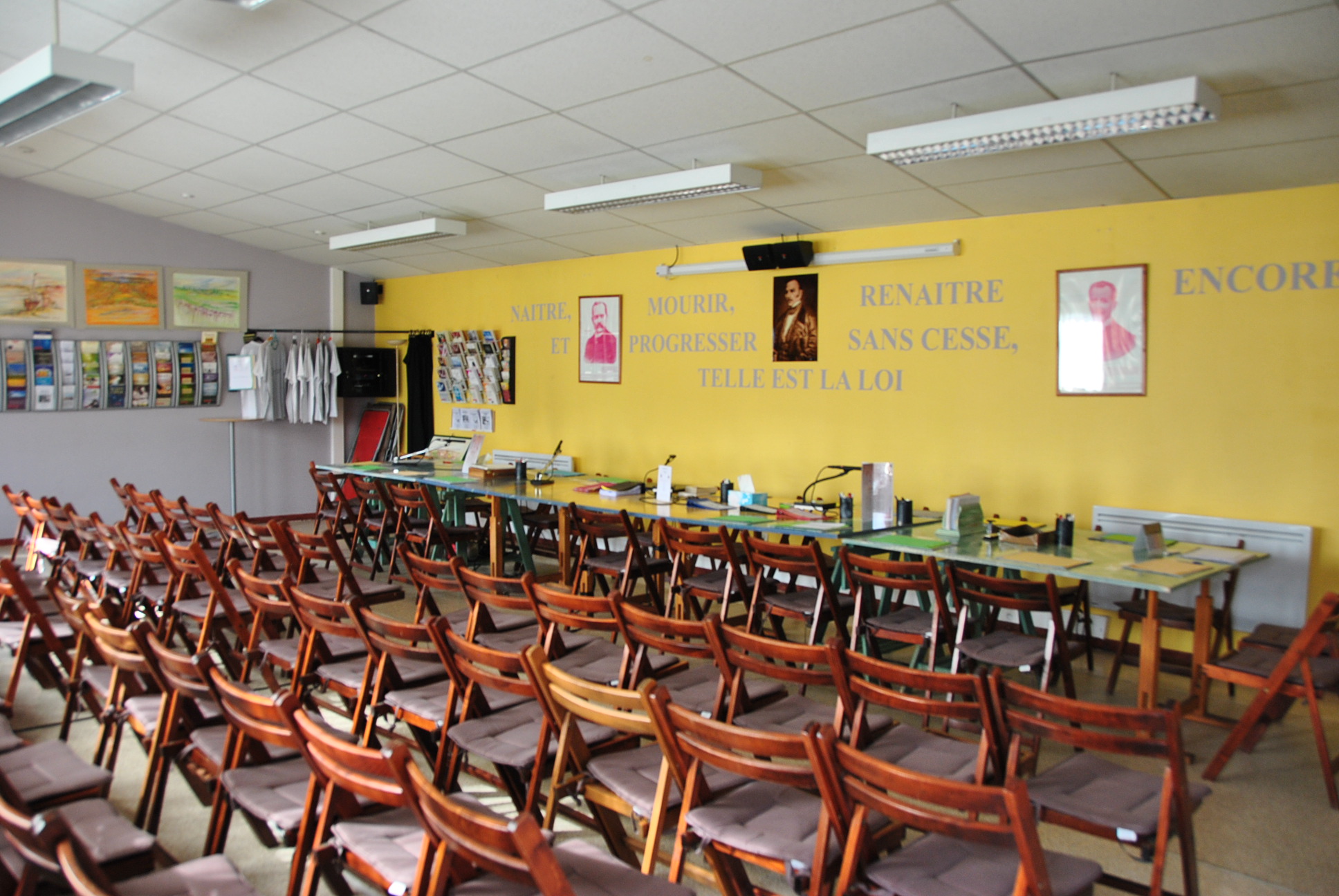 Au fond, l'entree avec l'accueil et les livres à la vente