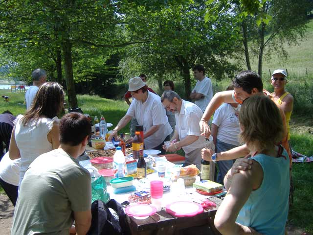 Préparation de la table du pique-nique